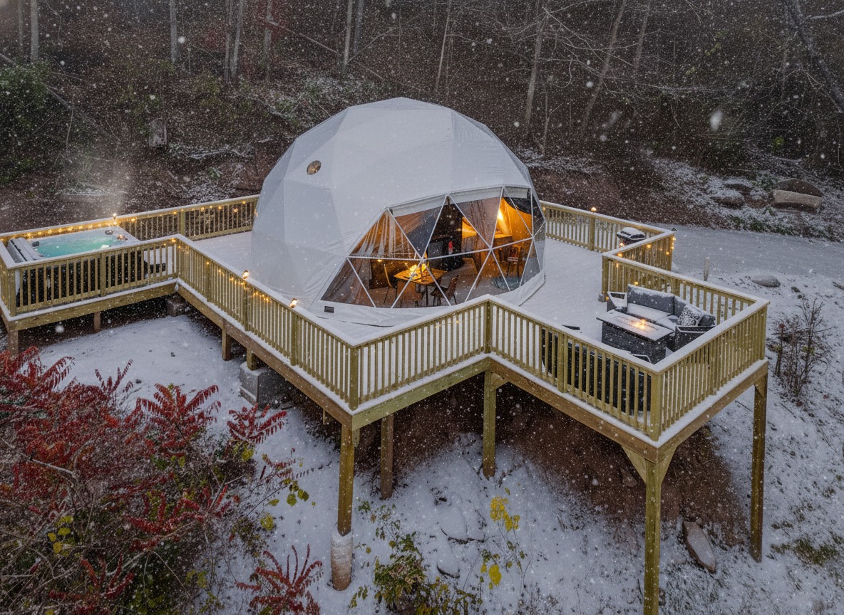 A romantic, 🥰 fully heated geodesic dome 🍙 with breathtaking views.