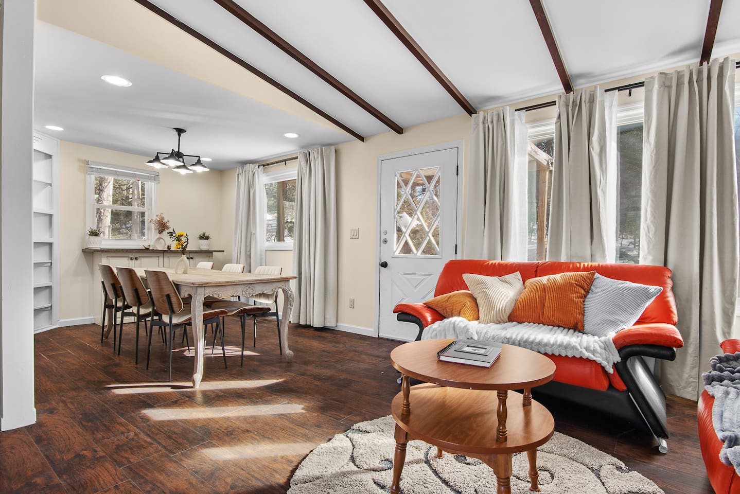 Located in Woodridge in the Catskills region, the home offers a peaceful lakefront setting while still being close to nature, hiking, and local attractions.